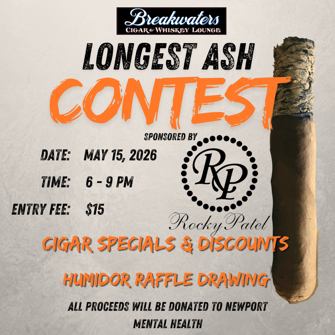 Back to All Events Longest Ash Contest Friday, May 15, 2026 6:00 PM 9:00 PM Breakwaters Cigar & Whiskey 796 Aquidneck Avenue Middletown, RI, 02842 United States (map) Google Calendar ICS